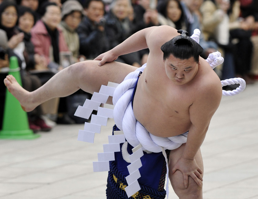 1月6日,日本舉行了傳統(tǒng)的相撲表演迎新年活動。