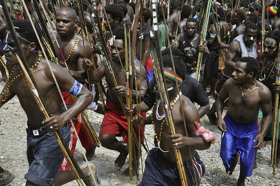 1月6日,印尼巴布省的兩個村落因債務(wù)問題引發(fā)了武裝爭斗,雙方手持弓箭等原始武器進行了一場原始的戰(zhàn)爭。目前,這場沖突已經(jīng)造成多人傷亡。圖片來源:中國新聞網(wǎng)