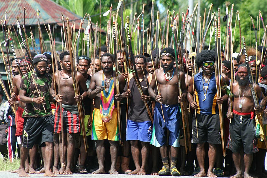 1月6日,印尼巴布省的兩個(gè)村落因債務(wù)問題引發(fā)了武裝爭(zhēng)斗,雙方手持弓箭等原始武器進(jìn)行了一場(chǎng)原始的戰(zhàn)爭(zhēng)。目前,這場(chǎng)沖突已經(jīng)造成多人傷亡。圖片來源:中國(guó)新聞網(wǎng)