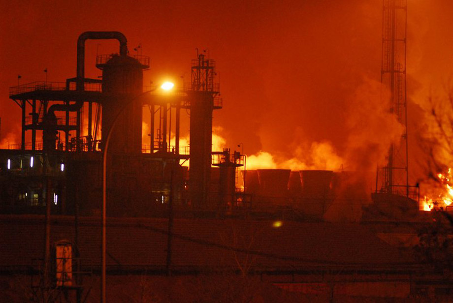 1月7日,蘭州石化公司石油化工廠316罐區(qū)爆炸著火。甘肅省政府當(dāng)日深夜在現(xiàn)場舉行新聞發(fā)布會說,事故造成1人重傷、5人輕傷、9人留院觀察、5人失蹤。 圖為爆炸現(xiàn)場。裴強/CFP