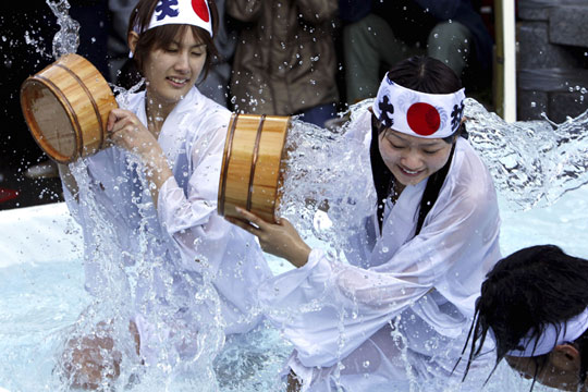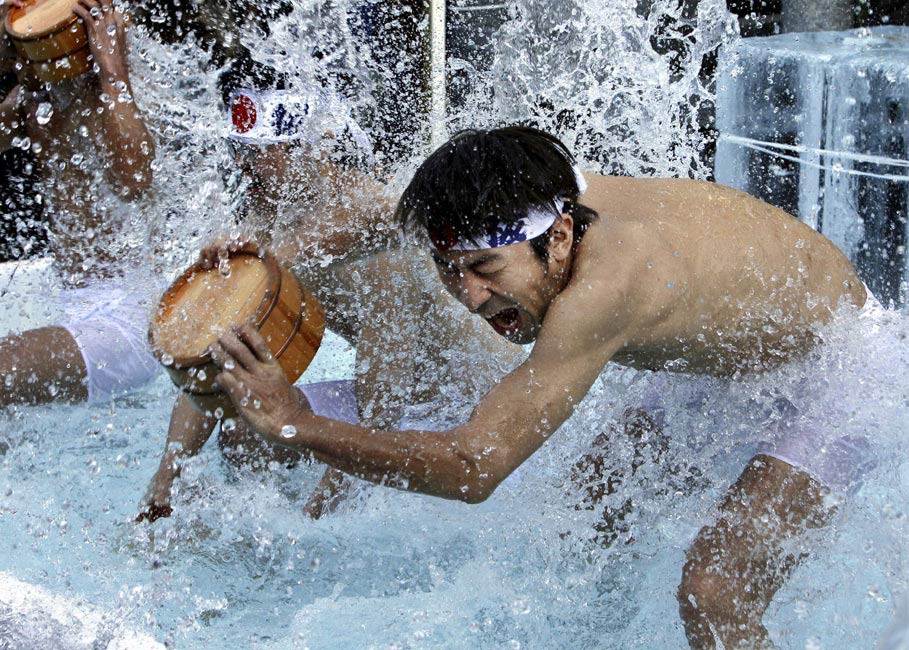1月9日,日本東京,眾多日本民眾參加傳統(tǒng)的凈化儀式,他們用冷水澆身,祈禱身體和靈魂得到凈化。