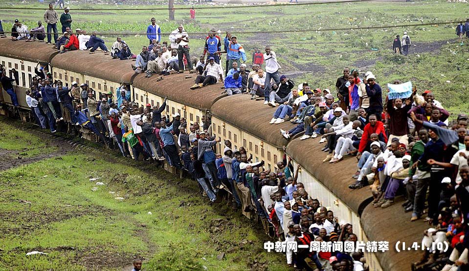 1月5日(周二),在肯尼亞內羅畢的馬卡達拉車站,乘客們站在一列擁擠的通勤列車外部。由于小型巴士司機不滿警方腐敗舉行了罷工,公共交通連續(xù)第二天處于癱瘓。圖片來源:中國新聞網