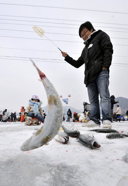 2010年1月9日,韓國華川郡,一年一度的華川山鱒魚節(jié)當日舉行。圖片來源:中國新聞網(wǎng)