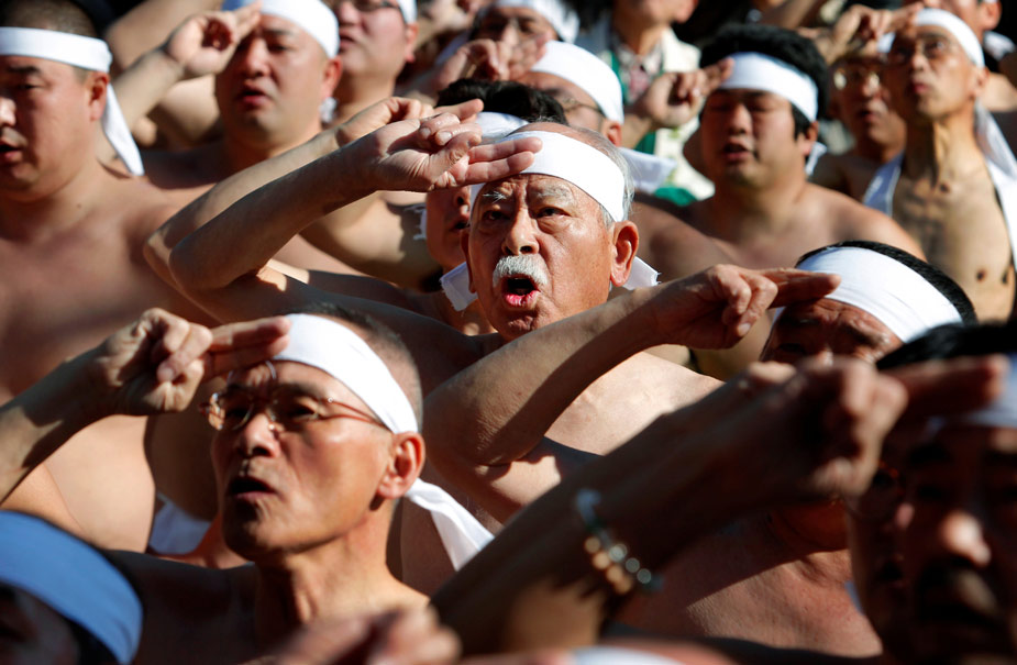 2010年1月10日,日本東京,眾多健身愛好者一同在冷水中浸泡,祈禱自己在新一年身體健康,并展示自己的體魄。圖片來源:中國(guó)新聞網(wǎng)