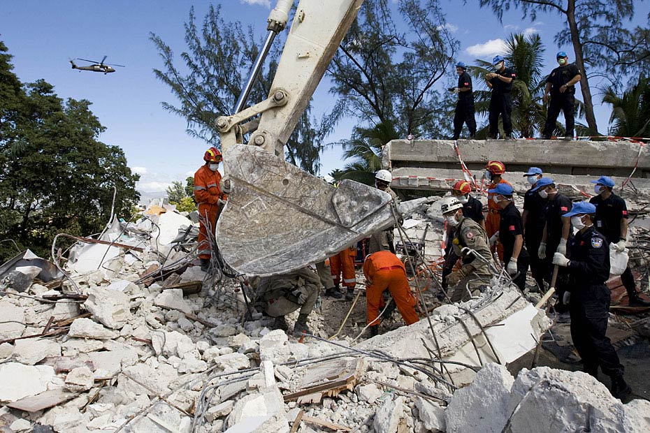 1月16日,海地首都太子港,中國國際救援隊在聯(lián)海團總部對遇難者進行搜尋工作。此前八名中方失蹤人員的遺體已全被找到。圖片來源:中國新聞網(wǎng)