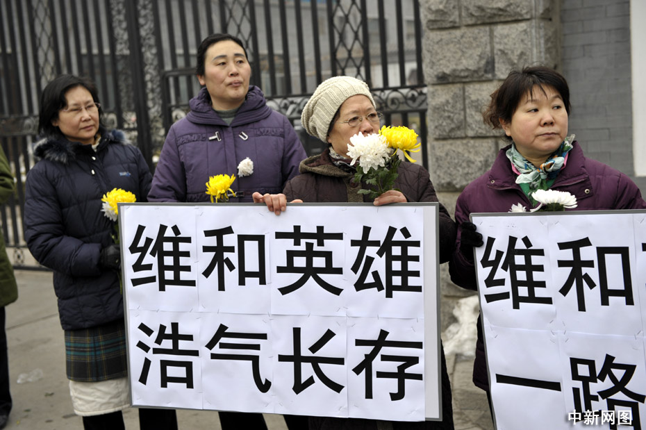 1月19日,北京民眾自發(fā)守候在通往北京八寶山殯儀館的路口迎接英烈的靈柩。當(dāng)日,八位海地地震遇難中國維和警察的靈柩搭乘專機(jī)將抵達(dá)北京。中新網(wǎng)記者 金碩 攝
