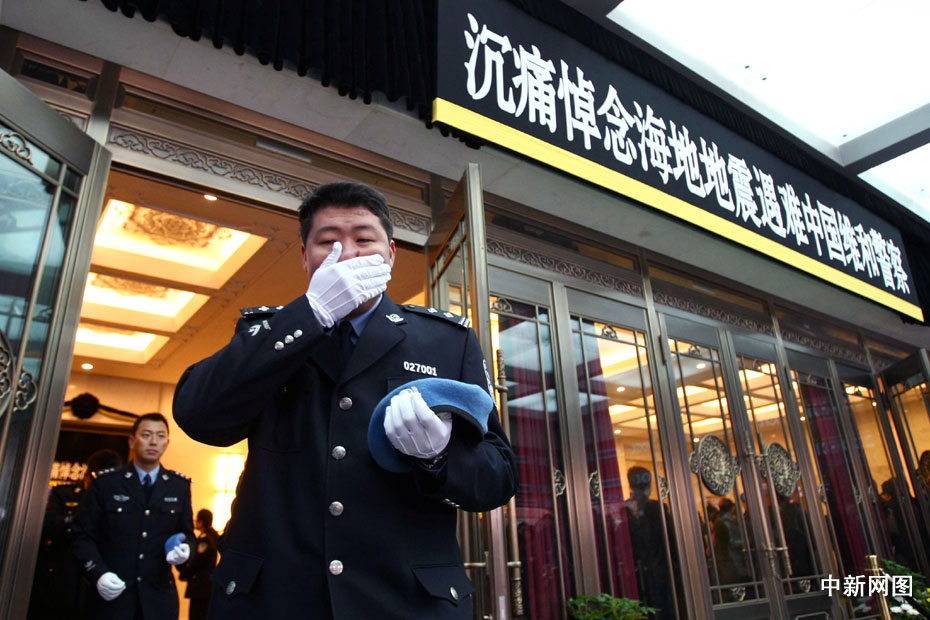 海地地震遇難中國維和警察遺體告別儀式1月20日上午9時在北京八寶山殯儀館大禮堂舉行。圖片來源:中國新聞網(wǎng)