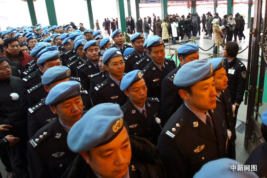 海地地震遇難中國維和警察遺體告別儀式1月20日上午9時(shí)在北京八寶山殯儀館大禮堂舉行。圖片來源:中國新聞網(wǎng)