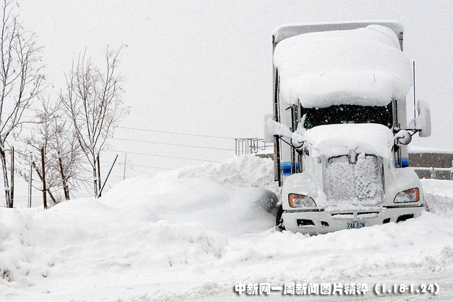 1月21日,美國(guó)亞利桑那州北部因大雪影響貨車與客車均被迫停駛。圖片來(lái)源:中國(guó)新聞網(wǎng)