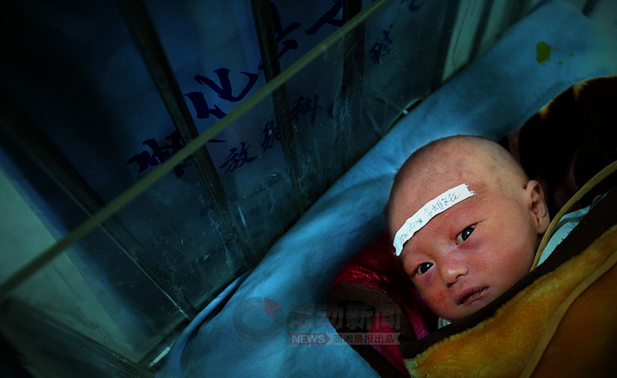 1月15日,湖南省兒童醫(yī)院,小振和躺在醫(yī)院新生兒的小床上,偶爾哇哇大哭,偶爾睜開雙眼,驚恐地打量著這個陌生的世界。瀟湘晨報 記者 楊抒懷 攝
