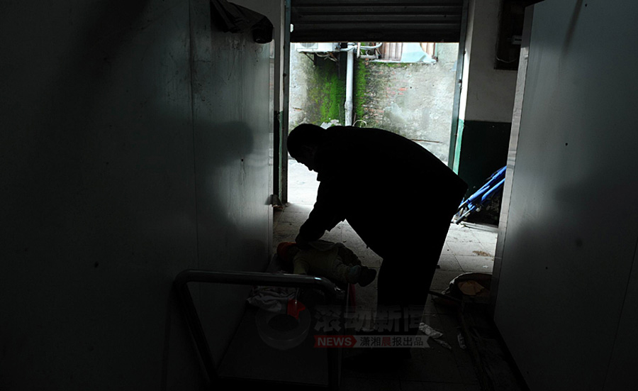 1月19日,省兒童醫(yī)院太平間,高雄飛給小振和穿上剛買的新衣服,送兒子最后一程!皟鹤!爸爸給 你穿衣服來了,乖乖的!”高雄飛鼻子不停地抽搐,雙手卻輕輕地給 兒子穿上新買的黃色小衣裳。瀟湘晨報 記者 楊抒懷 攝