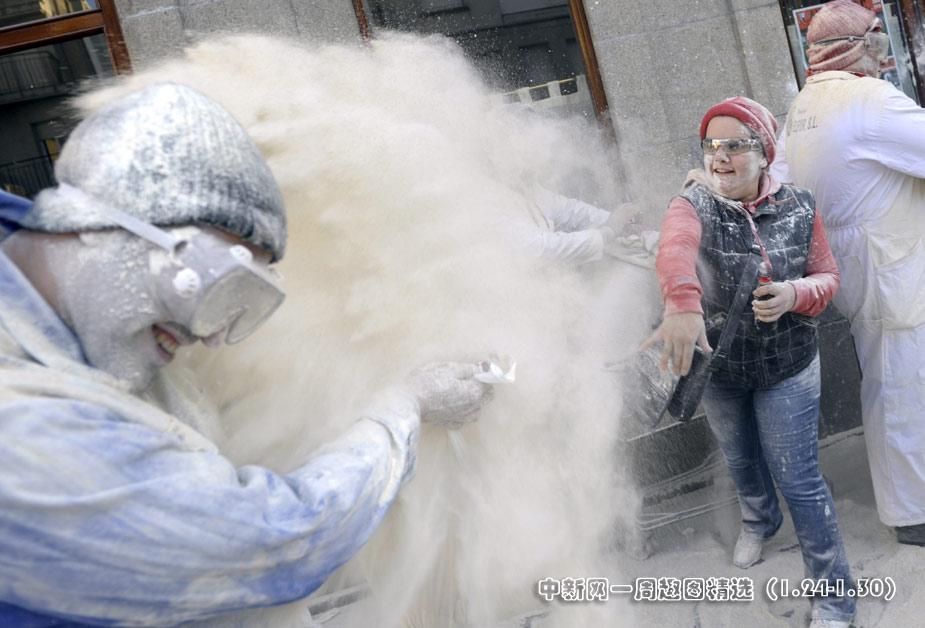 1月24日,西班牙西北部的一座村莊舉辦的狂歡節(jié)中上演瘋狂的“面粉大戰(zhàn)”。 圖片來(lái)源:中國(guó)新聞網(wǎng)>>點(diǎn)擊觀看詳細(xì)內(nèi)容