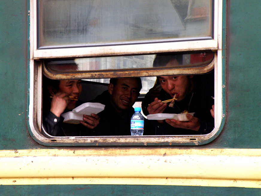 一年一度的春運今日起正式開始。2010年的春運從1月30日起至3月10日,為期40天,其中節(jié)前15天,節(jié)后25天。據(jù)權威預測,今年春運客運量料超25億人次。圖為1月30日,春運啟幕,湖北宜昌火車站,旅客在火車上吃午餐。劉君鳳 攝