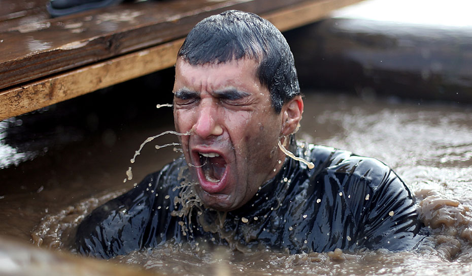 1月31日,在英國小鎮(zhèn)Perton舉行了一場硬漢挑戰(zhàn)賽。圖片來源:中國新聞網(wǎng)