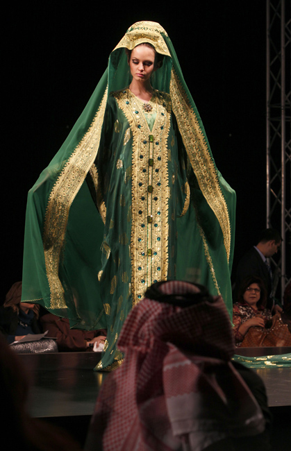 模特身著中東異域風情服飾與火辣性感的內(nèi)衣往來于T臺之上,給人們帶來了穿越時空的幻覺。圖片來源:中國新聞網(wǎng)