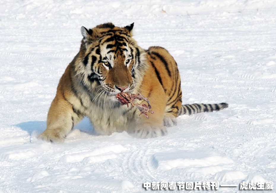 1月13日,黑龍江東北虎林園,老虎在雪地中嬉戲追逐。(王少華 張書儉 攝) 圖片來(lái)源:中國(guó)新聞網(wǎng)