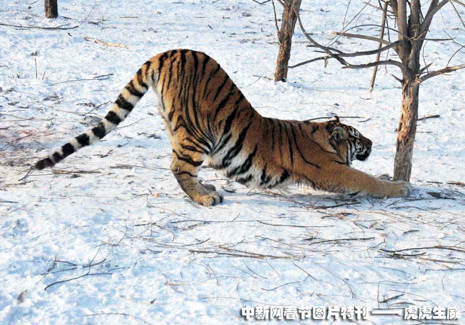 1月13日,黑龍江東北虎林園,老虎在雪地中嬉戲追逐。(王少華 張書儉 攝) 圖片來源:中國新聞網(wǎng)
