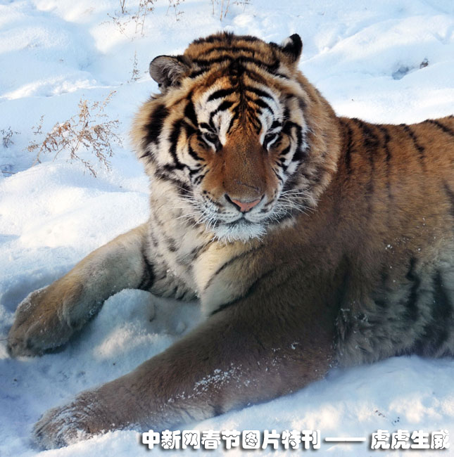 1月13日,黑龍江東北虎林園,老虎在雪地中嬉戲追逐。(王少華 張書(shū)儉 攝) 圖片來(lái)源:中國(guó)新聞網(wǎng)