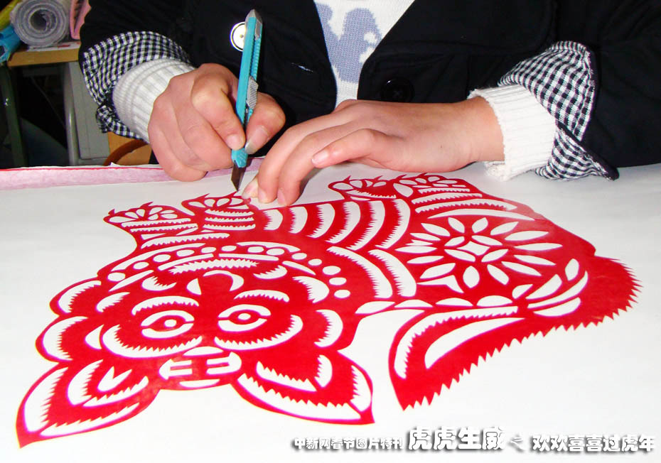 12月21日,重慶市云陽教師進(jìn)修學(xué)院08級(jí)幼教班的學(xué)生在利用美術(shù)課“剪老虎”。中新社發(fā) 饒國君 攝