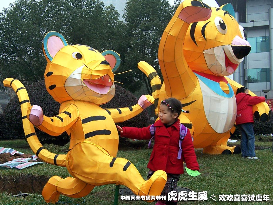 2月7日,10座“卡通虎燈”亮相江蘇省南京市街頭,為即將到來的新春佳節(jié)增添了喜氣。這批“卡通虎燈”由江蘇省揚(yáng)州市民間藝人制作,造型各異,憨態(tài)可掬,吸引了眾多小朋友的喜愛。中新社發(fā) 安東 攝