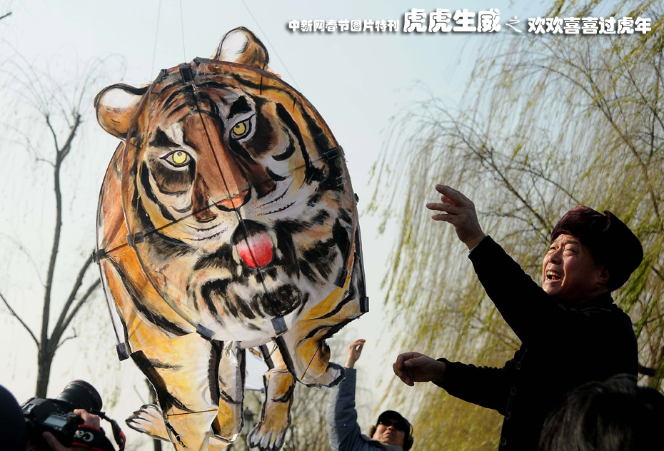2009年12月31日,數(shù)位風(fēng)箏協(xié)會(huì)的主席、理事帶著他們制作的“猛虎下山”、“虎虎生威”等迎新風(fēng)箏來(lái)到杭州西湖白堤景區(qū)放飛,預(yù)祝協(xié)會(huì)和杭州市民來(lái)年紅紅火火。 中新社發(fā) 引煒 攝