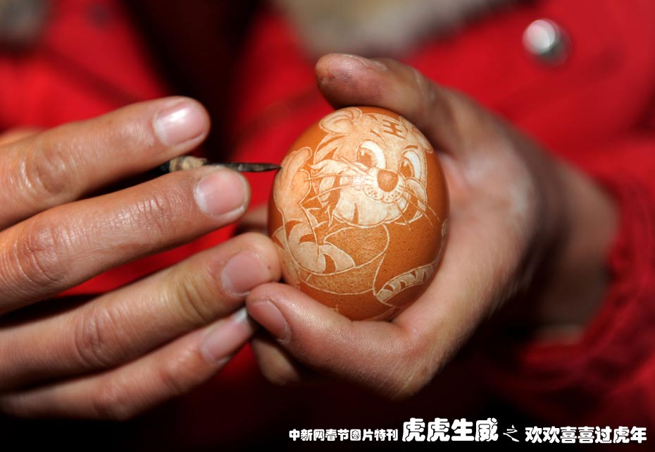 1月12日,家住合肥市瑤海區(qū)化南社區(qū)的火車司機王劍正在進行“蛋雕虎”創(chuàng)作。上海鐵路局合肥機務段的火車司機王劍,從小酷愛美術,業(yè)余從事蛋雕雕刻10余年,隨著農歷虎年臨近,他以雞蛋殼為原料創(chuàng)作出一系列造型多樣,栩栩如生的“蛋雕虎”作品,以此表達對虎年的美好期望與祝福。中新社發(fā) 解琛 攝