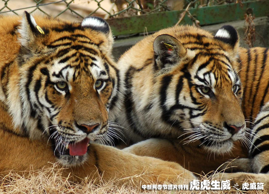 圖為兩只東北虎在廈門海滄野生動(dòng)物園草叢中漫步。中新社發(fā) 黃少毅 攝