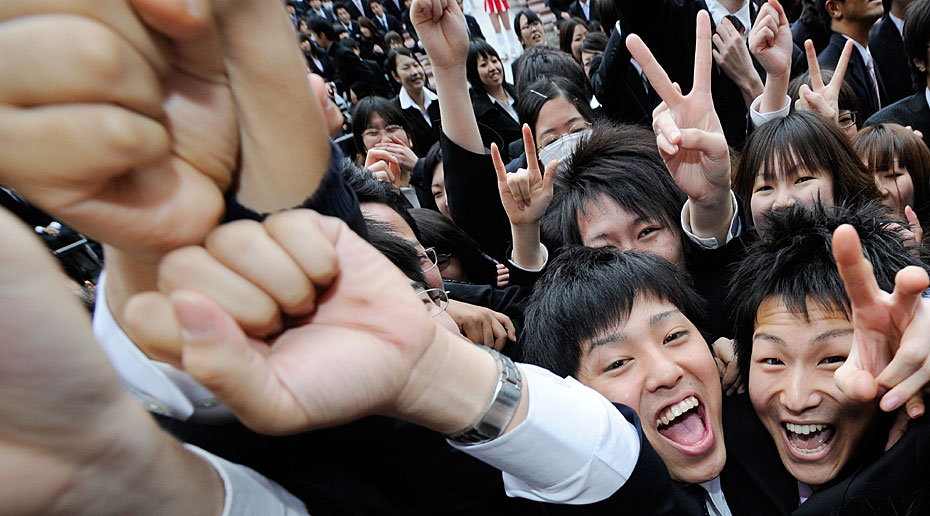 2月10日,日本東京職業(yè)學(xué)校的學(xué)生在求職動(dòng)員會(huì)上伸出拳頭展現(xiàn)信心。日本的失業(yè)率達(dá)5%,2011屆畢業(yè)生將面臨嚴(yán)峻就業(yè)形式。圖片來源:中國新聞網(wǎng)