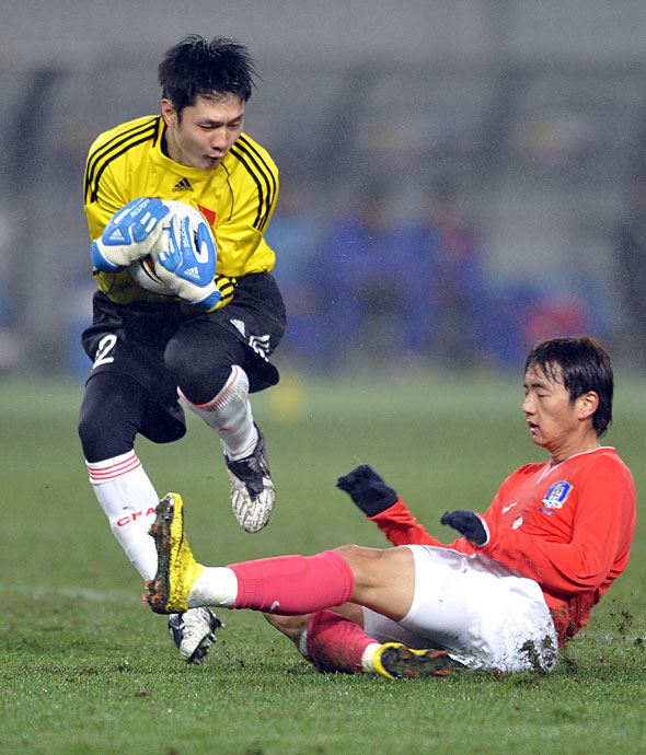 2月10日晚18:15,中國(guó)男足國(guó)家隊(duì)迎來了東亞四強(qiáng)賽第二場(chǎng)與韓國(guó)隊(duì)的比賽,憑借著于海、郜林和鄧卓翔的進(jìn)球,國(guó)足3:0完勝韓國(guó),讓“恐韓癥”成為歷史。圖片來源:中國(guó)新聞網(wǎng)
