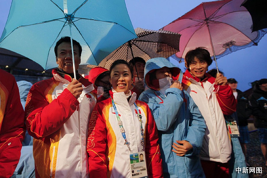 當地時間2月10日,中國代表團在溫哥華冬奧會奧運村舉行升旗儀式。升旗儀式結束后,中國代表團團長劉鵬帶領代表團成員展開橫幅高聲向全體國人送上新春祝福。中新社記者 盛佳鵬 攝