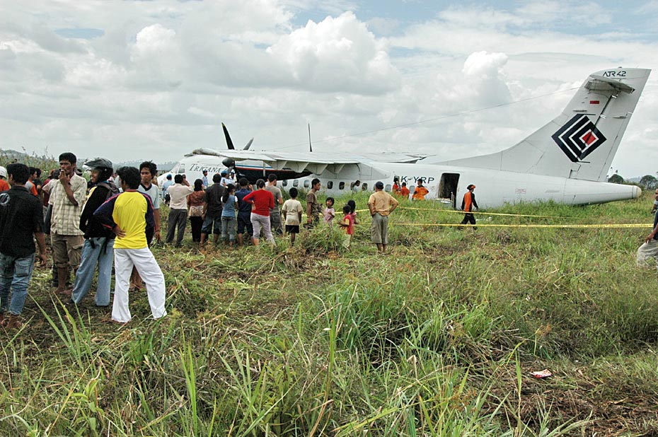 印尼當(dāng)?shù)貢r(shí)間2月11日,印尼一架客機(jī)成功迫降婆羅洲島的一片稻田,機(jī)上47名乘客和5名機(jī)組人員除兩人腿部骨折外,其他人均安然無恙。圖片來源:中國(guó)新聞網(wǎng)