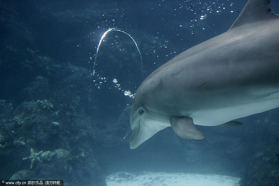 近日,美國(guó)奧蘭多海洋世界的一只寬吻海豚吹出“心形”氣泡,似乎要在情人節(jié)來(lái)臨前夕傳達(dá)濃濃愛(ài)意。圖片來(lái)源:CFP