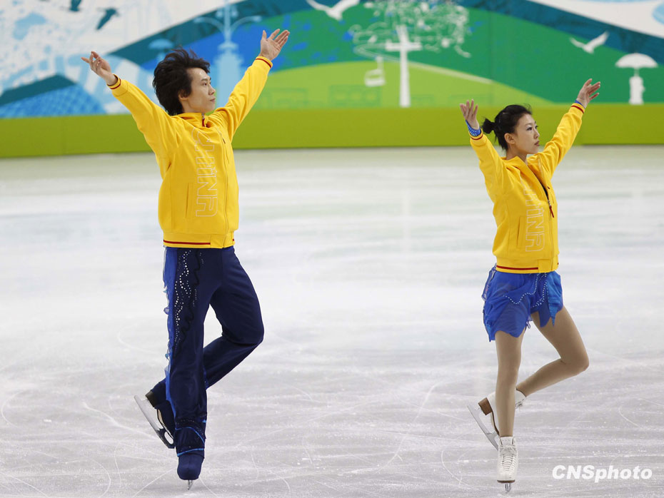 當地時間2月13日,中國花樣滑冰隊龐清/佟健、張丹/張昊在溫哥華太平洋體育館,利用最后的休息時間重復練習積極備戰(zhàn)即將到來的比賽。中新社記者 盛佳鵬 攝