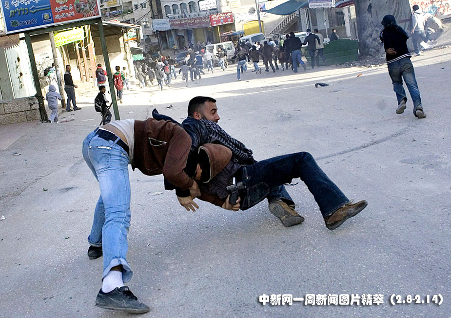 周二(9日)在耶路撒冷東部的難民營,一個(gè)巴勒斯坦暴亂分子(左)與一名以色列便衣警察扭打在一起。