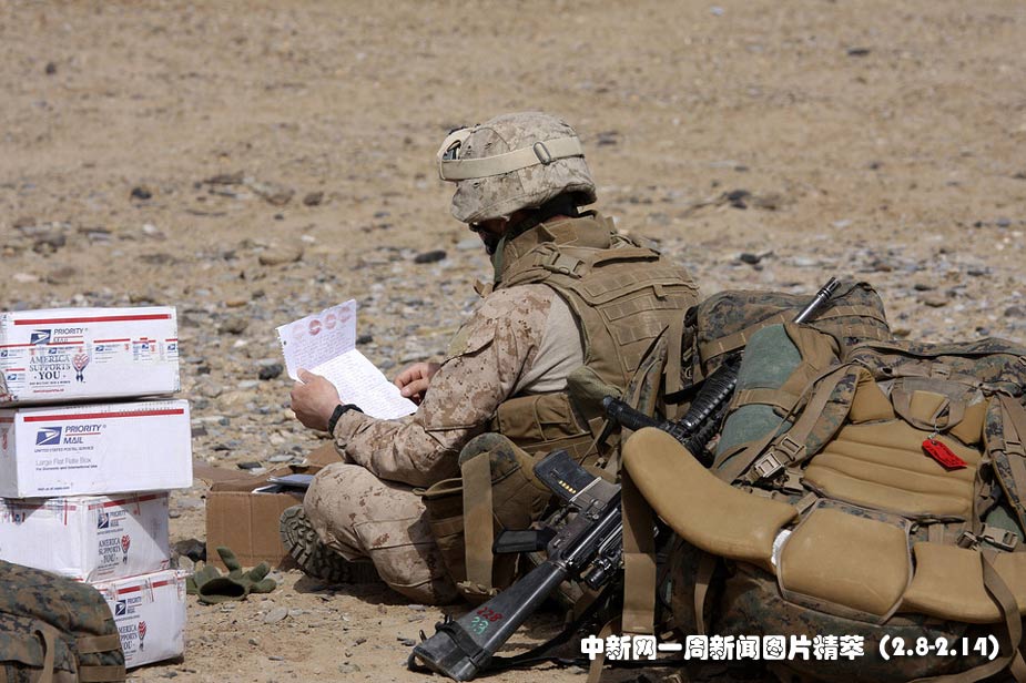 周四(11日),阿富汗,一名美國士兵正在翻看一封印有口紅唇印的信件。