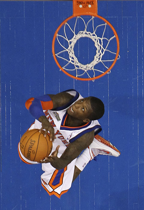 圖為紐約尼克斯隊的羅賓遜進行扣籃表演。
