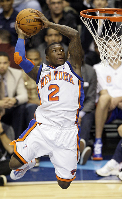 2月14日,09-10賽季NBA全明星賽進(jìn)入第二日,萬(wàn)眾矚目的扣籃大賽開(kāi)幕。紐約尼克斯隊(duì)的羅賓遜不負(fù)眾望,第三次獲得扣籃王桂冠,超越了著名球星喬丹。圖片來(lái)源:中國(guó)新聞網(wǎng)