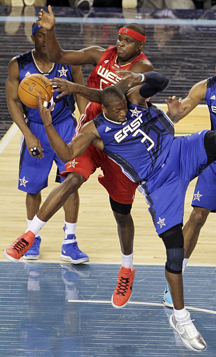 美國當地時間2月14日,2010NBA全明星周末,東部明星隊以141比139險勝西部明星隊。整場比賽猶如度假一般全無緊張氣氛。圖片來源:中國新聞網