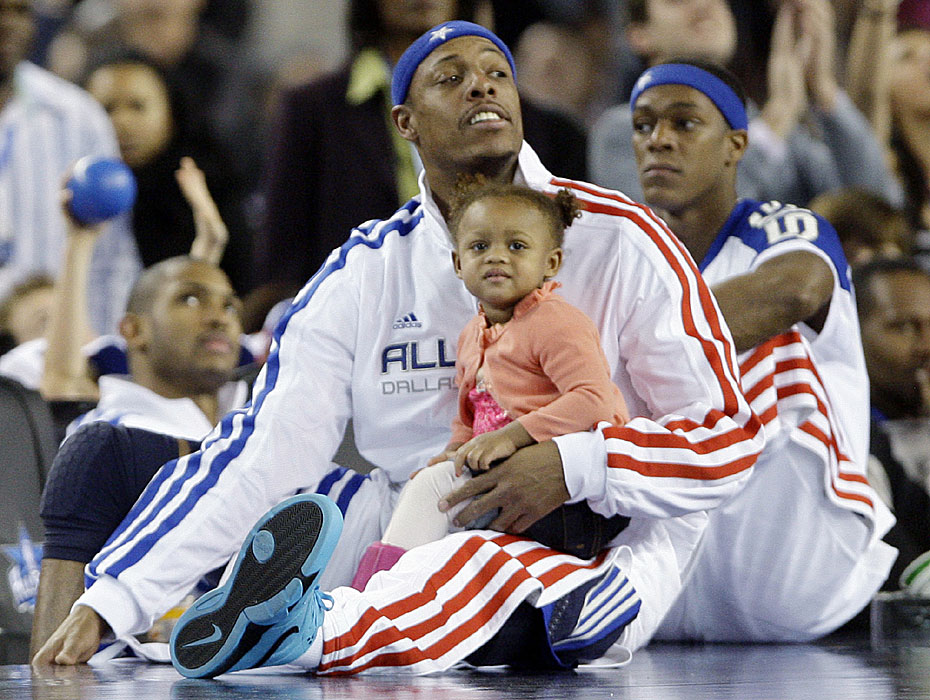 圖為東部明星隊(duì)隊(duì)員帶著家屬在球場(chǎng)上觀賽。