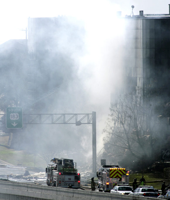一架低空飛行的小型飛機(jī)18日撞入德克薩斯州奧斯汀市國稅局的辦公大樓,當(dāng)?shù)毓賳T表示這可能是一件蓄謀事件。圖片來源:中國新聞網(wǎng)