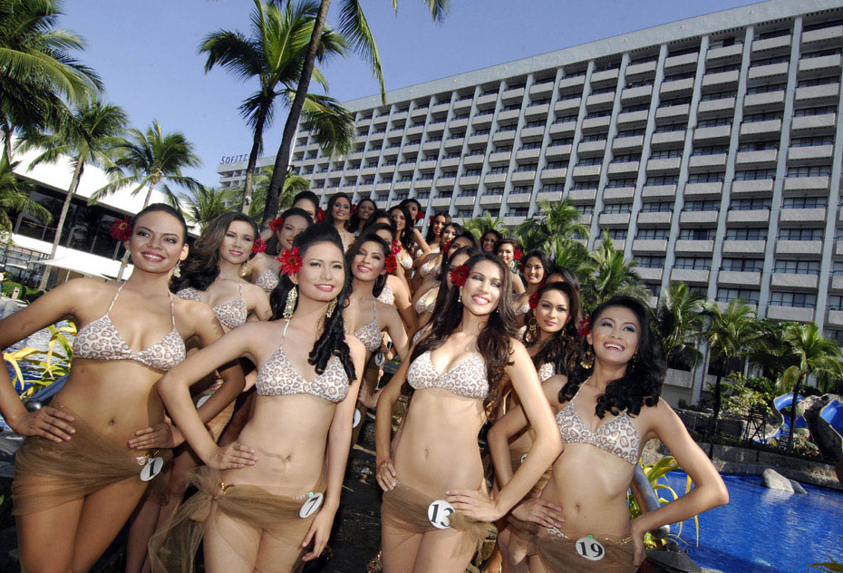2月18日,在菲律賓首都馬尼拉,參加2010年菲律賓小姐競選的選手們?cè)谡故居狙b。當(dāng)日,共有24名佳麗參加了這項(xiàng)比賽。圖片來源:中國新聞網(wǎng)