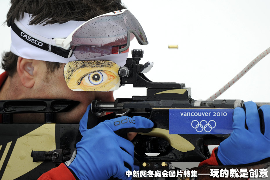 男子冬季兩項比賽中,挪威選手的眼罩別具一格。圖片來源:中國新聞網(wǎng)