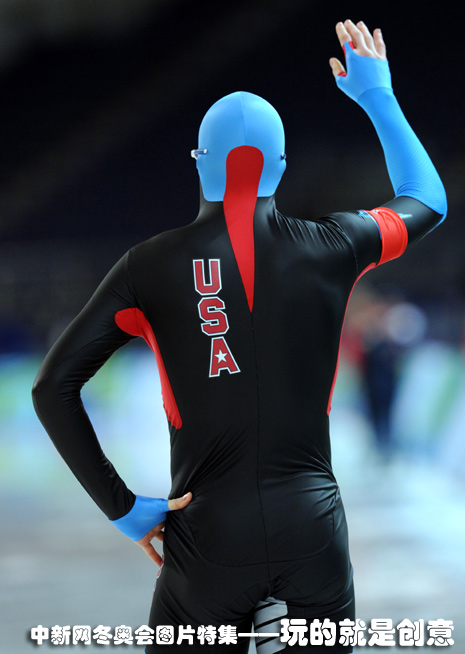 美國(guó)速滑運(yùn)動(dòng)員的搞怪造型。圖片來(lái)源:中國(guó)新聞網(wǎng)