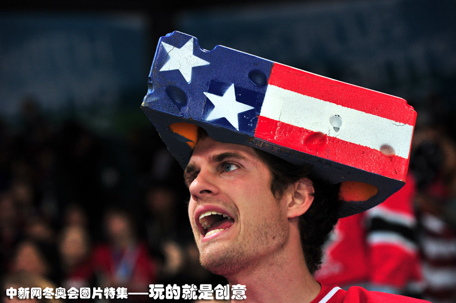 圖為一位美國(guó)冰球迷在為自己的球隊(duì)加油。圖片來(lái)源:中國(guó)新聞網(wǎng)