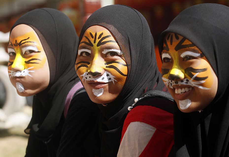 2月20日,馬來(lái)西亞民眾圍聚在首都吉隆坡附近的佛光山東禪寺,紛紛將自己繪成老虎的樣子,呼吁大家保護(hù)野生虎。圖片來(lái)源:中國(guó)新聞網(wǎng)