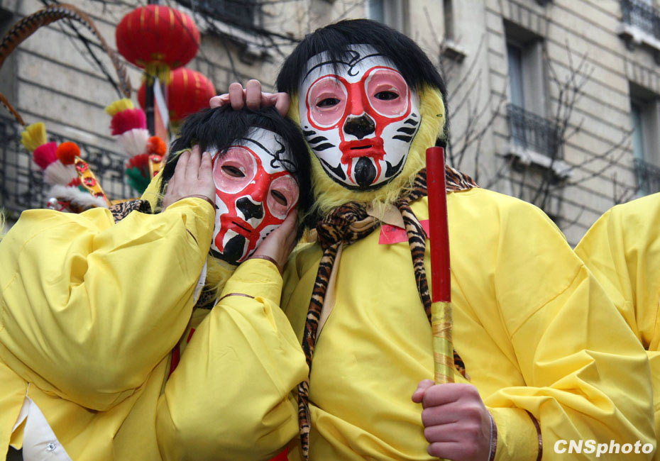 法國(guó)巴黎著名的“唐人街”——十三區(qū)21日下午舉行虎年春節(jié)華人嘉年華大游行,給這個(gè)有著顯著中國(guó)傳統(tǒng)文化特色的華人聚居區(qū)帶來(lái)了歡樂(lè)與喜氣。圖為游行隊(duì)伍中的孫悟空造型。中新社發(fā) 吳衛(wèi)中 攝