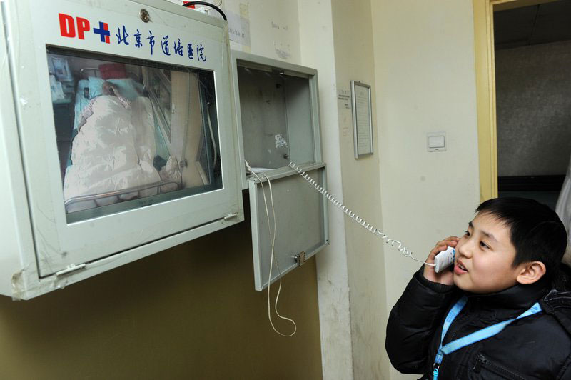 “我一刻都不想離開母親!22日,邵帥靜靜地等候在病房外。房間內(nèi),身患白血病的母親邵丹躺在艙內(nèi),因為怕感染,母子兩人盡管相隔一墻,也不能相見。但每天,邵帥堅持要和母親進行視頻會面。邵帥的姥姥說,孩子害怕或許在下一秒鐘,母親就會撒手人寰。