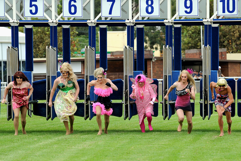 當(dāng)?shù)貢r(shí)間2月26日,澳大利亞悉尼,眾多同性戀們濃妝艷抹在皇家賽馬場(chǎng)舉行賽跑,迎接即將到來的悉尼同性戀大游行。
