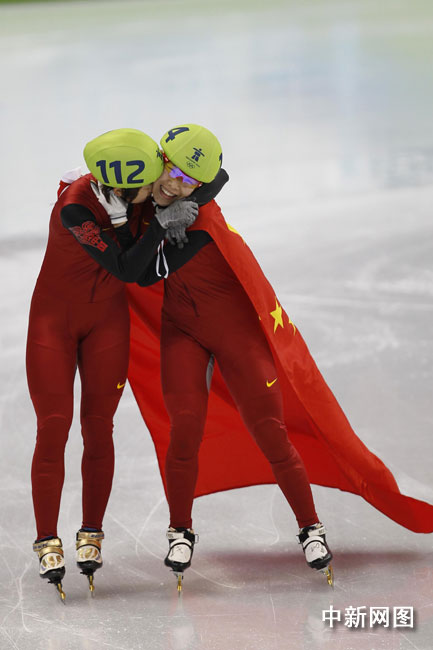 北京時間27日中午,中國選手王濛在2010年溫哥華冬奧會短道速滑女子1000米的決賽中摘得金牌。圖片來源:中國新聞網(wǎng)