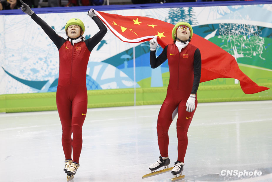 北京時間27日中午,中國選手王濛在2010年溫哥華冬奧會短道速滑女子1000米的決賽中摘得金牌。圖片來源:中國新聞網(wǎng)